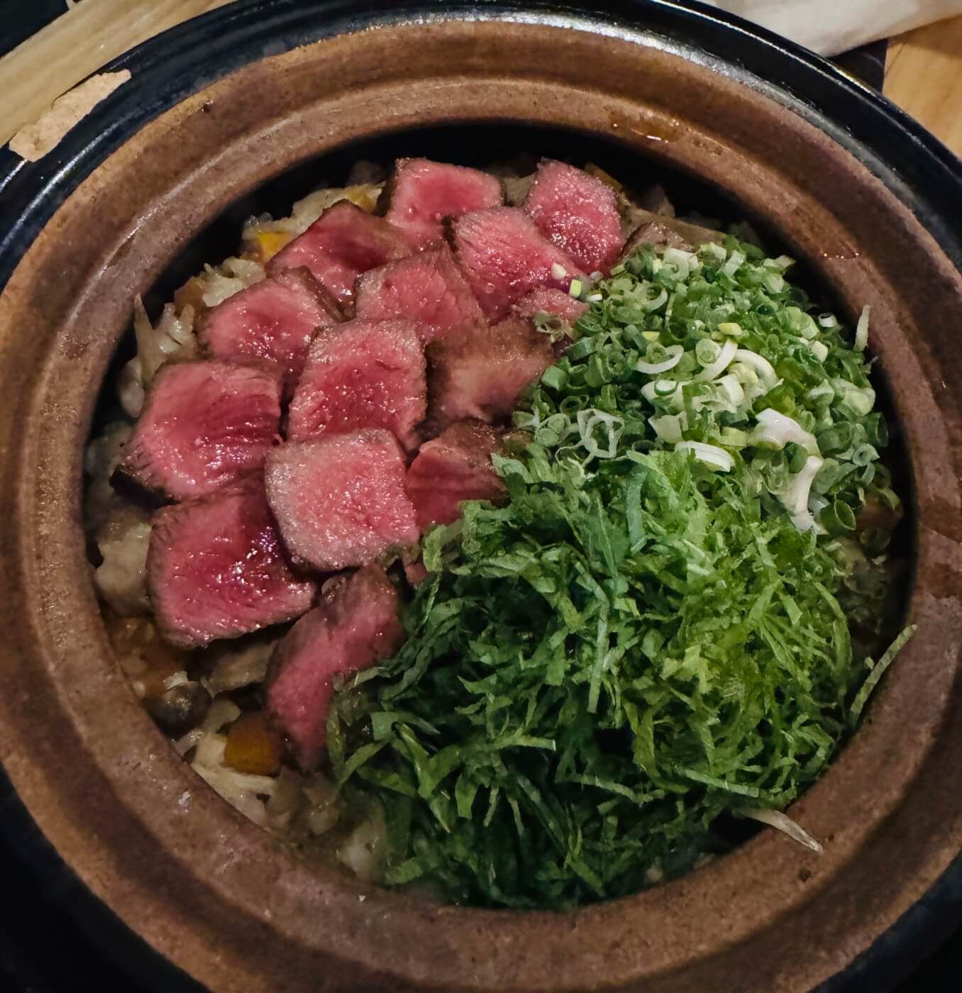 最初はお肉をそのまま食べ、その後に混ぜて食べるのが良きです。